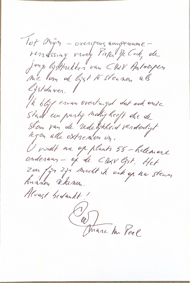 Marc Van Peel blijkt gevraagd geweest te zijn nog even vol te houden in de politiek.