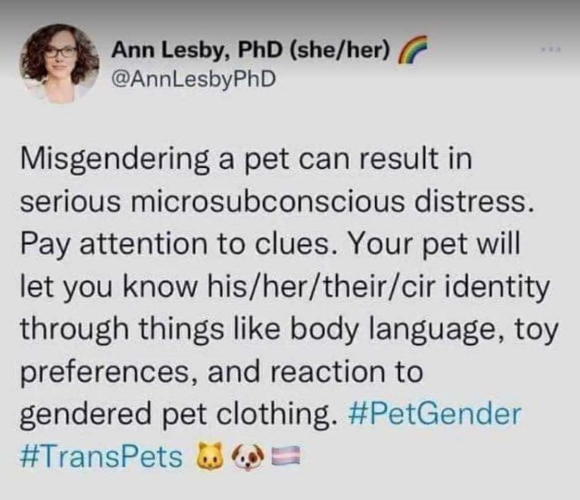 In het voorbeeld van de PhD hierboven kan men enkel hopen dat dit niet opgezocht is door een lid van de faculteit Diergeneeskunde. Deze afdeling geniet terecht internationale faam, het zou een doodzonde zijn moest dat tenietgedaan worden door een knettergek iemand. Erger nog, zou deze post gemaakt kunnen zijn door iemand van de Universiteit Gent? Het zou zomaar kunnen als we enkele feiten bekijken: (a) kennis van dieren (=> UGent) (b) psychologie in het domein huisdieren (=> UGent) (c) Genderidentiteit en woke extremisme (=> UGent) (d) regenboogvlaggetje (=>UGent) (e) Zelfhatende Jood(se) (=>Ugent).