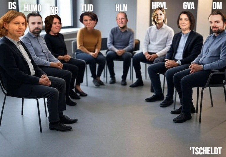 De 1e slide van de presentatie kwam op de muur terecht, en was getiteld: “Wat ik mis in het nieuws.” De hoofdredacteurs waren ondertussen nog zo klein als het peilingpercentage van Open VLD, en zaten met de bibber op hun lijf te wachten. “De titel van de pagina zegt het zelf zeker he. Welke onderwerpen mis ik als ik naar het nieuws van de regimepers kijk? Slide 2: Chat control. Het zal jullie wel bekend zijn, want ik weet dat ieder van jullie allemaal het nieuws volgen op X. Ja ja, eerst met veel bombarie verkondigen dat jullie kranten niet meer actief kunnen zijn op X omwille van Elon Musk, maar ieder van jullie zit elke dag op X te kijken om te zien wat jullie kunnen brengen. Dus jullie weten maar al te goed hoe verregaand het voorstel is om gewoonweg alle private communicatie van de burgers te kunnen inlezen. En dan onder het mom van bescherming van kinderen tegen pedofilie, laat me niet lachen. En ja, hier kijk ik even extra naar u, mijnheer Verhaaren en van Bakel. Uw VRT is de laatste tijd niet bepaald een baken van licht als het hier over gaat. En in het geval van de meest recente zaak rond kinderbeeldmisbruik van een oud-VRT medewerker hadden blijkbaar alle redacties de informatie, lagen de artikels klaar voor publicatie, en toch was er een dappere journalist nodig die anoniem dat nieuws lekte aan onder andere ‘tScheldt, zodat het toch nieuws werd? Is dat dan journalistiek tegenwoordig? Jullie allemaal zijn de eersten om hoog van de toren te blazen als de persvrijheid in gevaar is, maar als het over de gewone burger gaat, dan horen we er niks over. Vermoedelijk zijn jullie als bevriende journalisten veilig, en zal jullie communicatie wel niet gelezen worden via Chat control.”