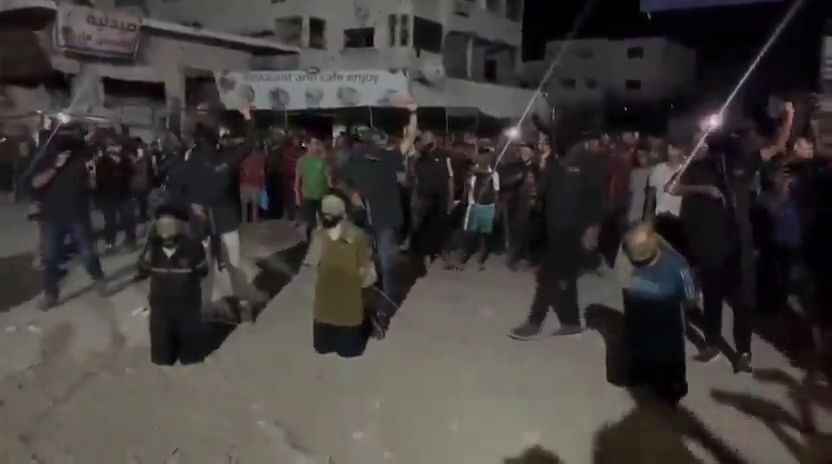 We kregen een alleraardigst filmpje binnen rechtstreeks vanuit dat fantastische land dat Bart De Wever in naam van België erkende. ‘tScheldt was de eerste om de beelden eergisteren via Twitter met haar lezers te delen. Het staat nu onomstotelijk vast dat de beelden dateren van 21 september 2025 en de executie van drie vermeende collaborateurs tonen in Gaza-stad. Het papiertje dat op het einde van de video te zien is zegt: “Het lot van iedereen die samenwerkt met de bezetting is de dood.”