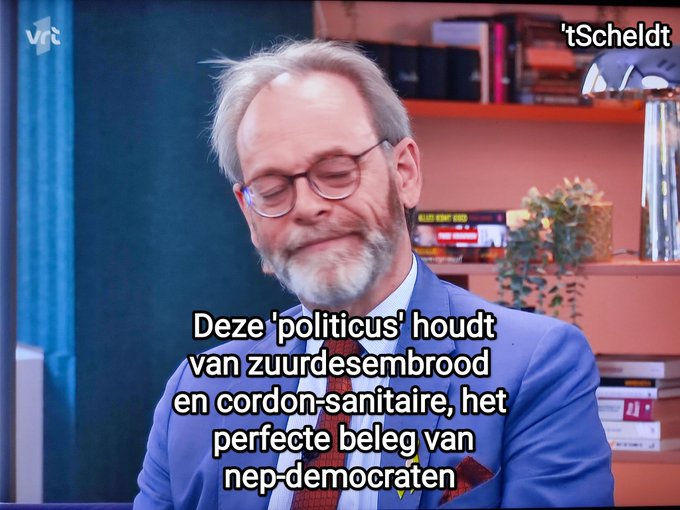 Het is één langgerekt reclameblok voor de vrienden van de regimepers. Afgelopen zondag was Peter De Roover te gast. Het programma begon met een slaafs schooloverzicht van de geschiedenis van kleine Peter tot grote Peter. Zelfs filmschoolprojecten over bekende mensen halen betere resultaten in vergelijking met wat de VRT hier aflevert. Na de hagiografie mocht Peter De Roover zijn natuurlijk arrogantie tentoonspreiden zonder noemenswaardige tegenkantingen van interviewer Michaël Van Droogenbroeck die week na week meer verstikt raak onder het gewicht van de foute formule en het achterlijke refterdecor. Op het einde van dit seizoen zal Van Droogenbroeck er uitzien als een platgereden pannenkoek. Deze formule van De Zevende Dag kan niet snel genoeg afgevoerd worden.